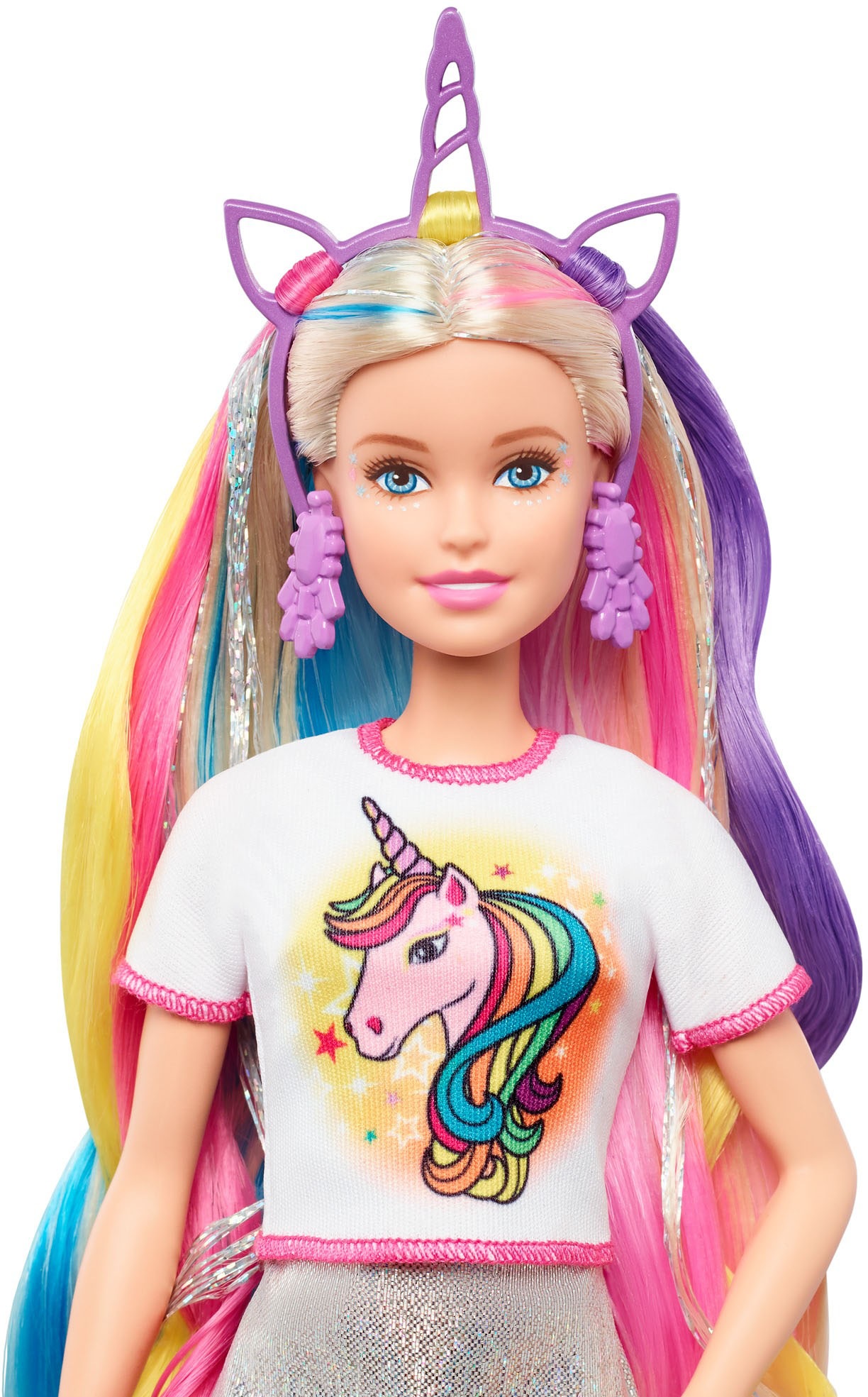 barbie fxn96 regenbogen glitzerhaar puppe mit bunten 19 cm langen haaren und zubehor puppen spielzeug ab 3 jahren