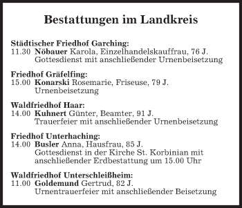 bestattungsunternehmen in 85540 haar