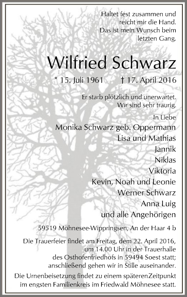 traueranzeigen von wilfried schwarz