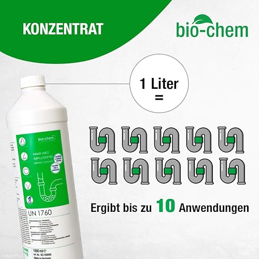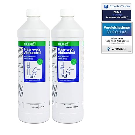 Bio chem haar weg abfluss frei. Bio chem haar weg abflussfrei der als vergleichssieger ausgezeichnete bio chem haar weg abflussreiniger befreit zuverlässig alle arten von siphons rohren und abflüssen von verstopfungen. Vergleichssieger bio chem haar weg abflussfrei bewertung 1 1 sehr gut. Bio chem haar weg abflussfrei flüssiger abflussreiniger rohrreiniger hocheffektive formel gegen verstopfungen und haare für dusche bad badewanne wc waschbecken küche sparpack 2x 1000 ml. Hochkonzentrierter schnell wirkender flüssiger abflussreiniger zur entfernung von haaren seifenresten fetten blutresten und sonstigen organischen bestandteilen aus siphons rohren und abflüssen.