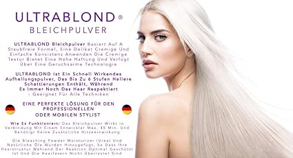 ultra blonde peroxide bleach hair powder dust free fast acting formula creamy texture low lights highlights ombre balayage baby lights