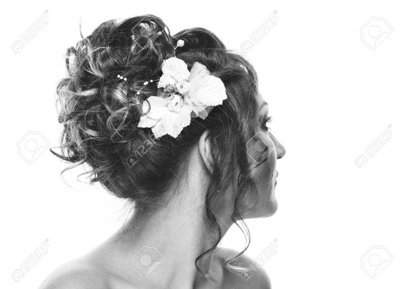 https de 123rf com photo 57433217 junge frau braut mit sch c3 b6nen frisur und stilvolle haar accessoire r c3 bcckansicht isoliert auf wei c3 9fem hintergrund html