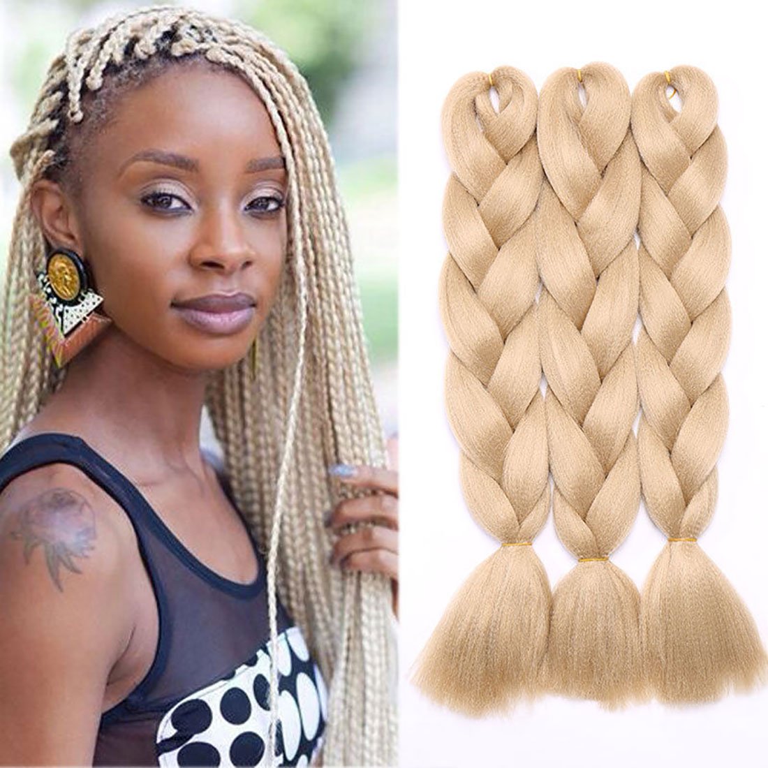 6pack jumbo braids hair crochet ombre braiding hair three tone kanekalon braids synthetic hair extensions 24inch black brown light brown