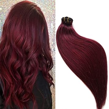clip in haarverlangerung set echthaar remy haar echthaarverlangerungen weinrot clip in extensions 99j burgund rot haarverlangerungen naturliche