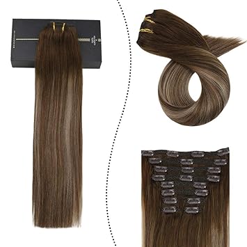 ugeat hair extensions clip in 100 real human hair dunkelbraun bis aschblond und braun 4 18 4 50cm haarverlangerungen echte haare clip tressen double
