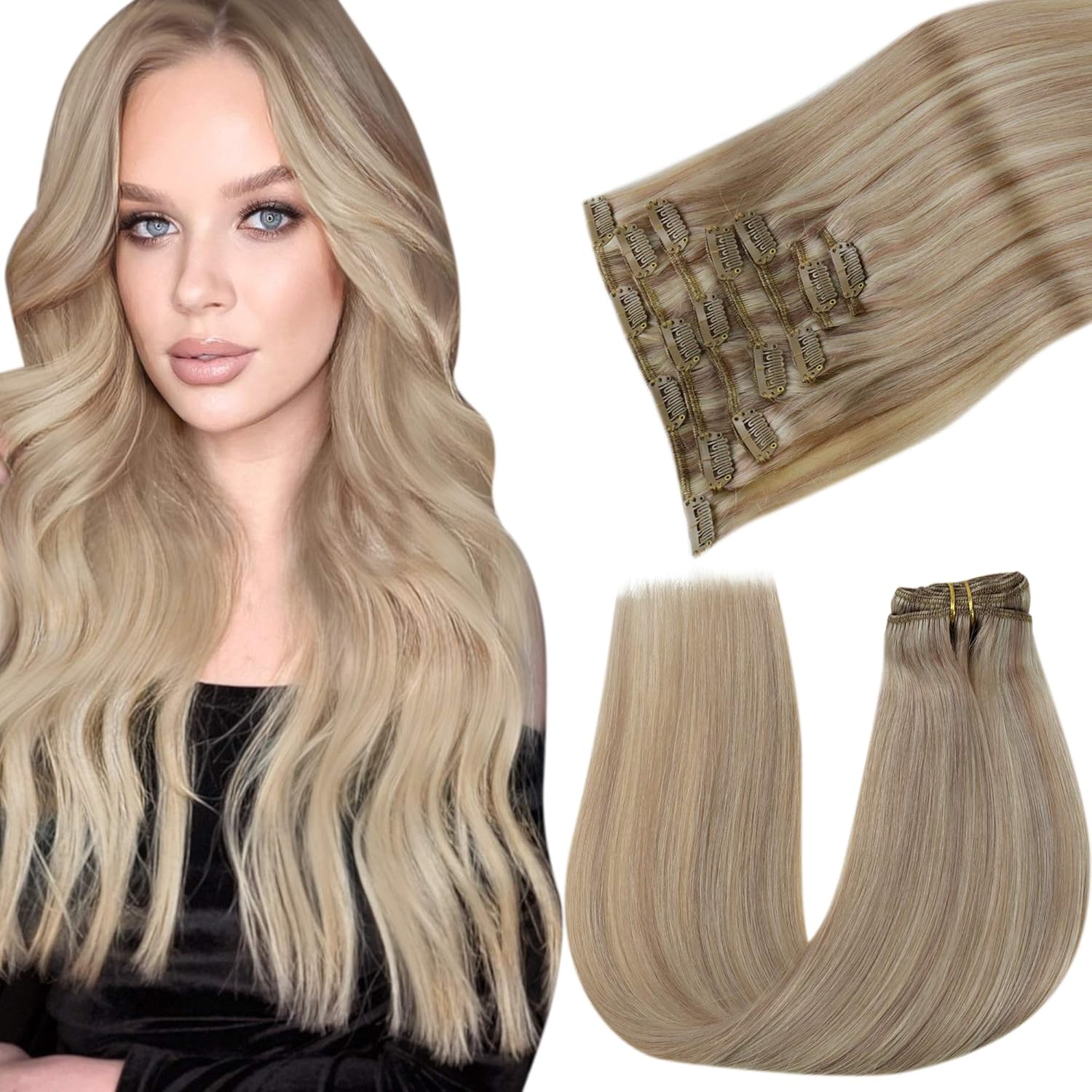 laavoo clip echthaar blond haareverlangerungen echte haare clip tressen 100g 7pcs aschblond highlight gebleichtes blond haarextension echthaar clip