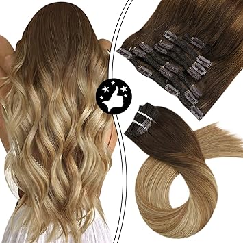 sunny 120gramm 7pcs nordic highlight echthaar clip in extensions blond ombre glatt haar clips echte haare extensions 14zoll 35cm