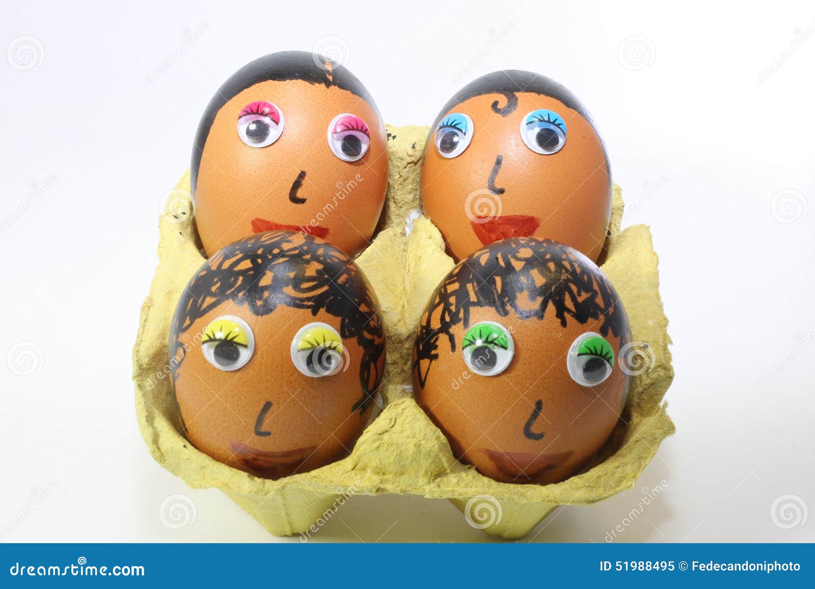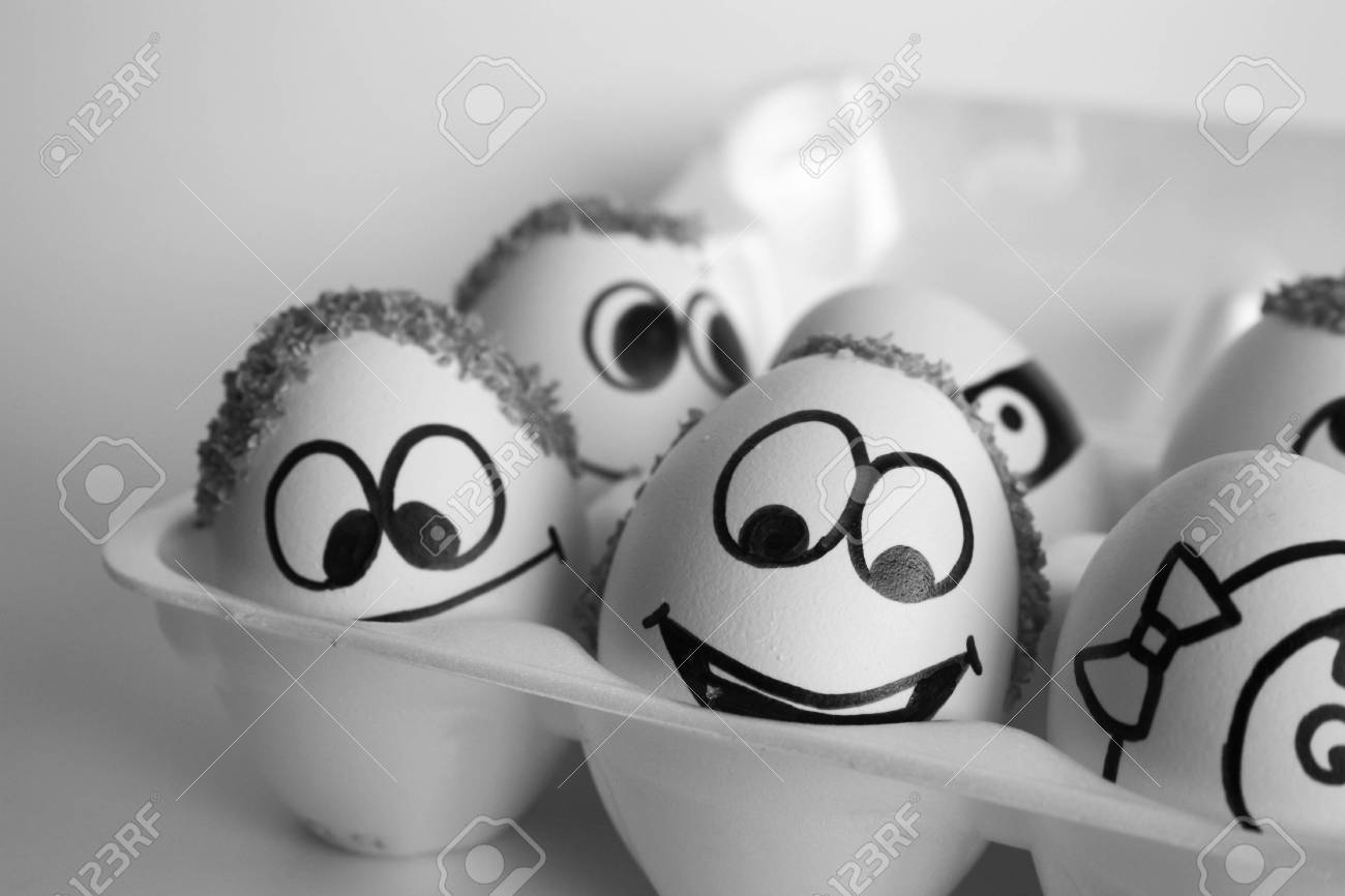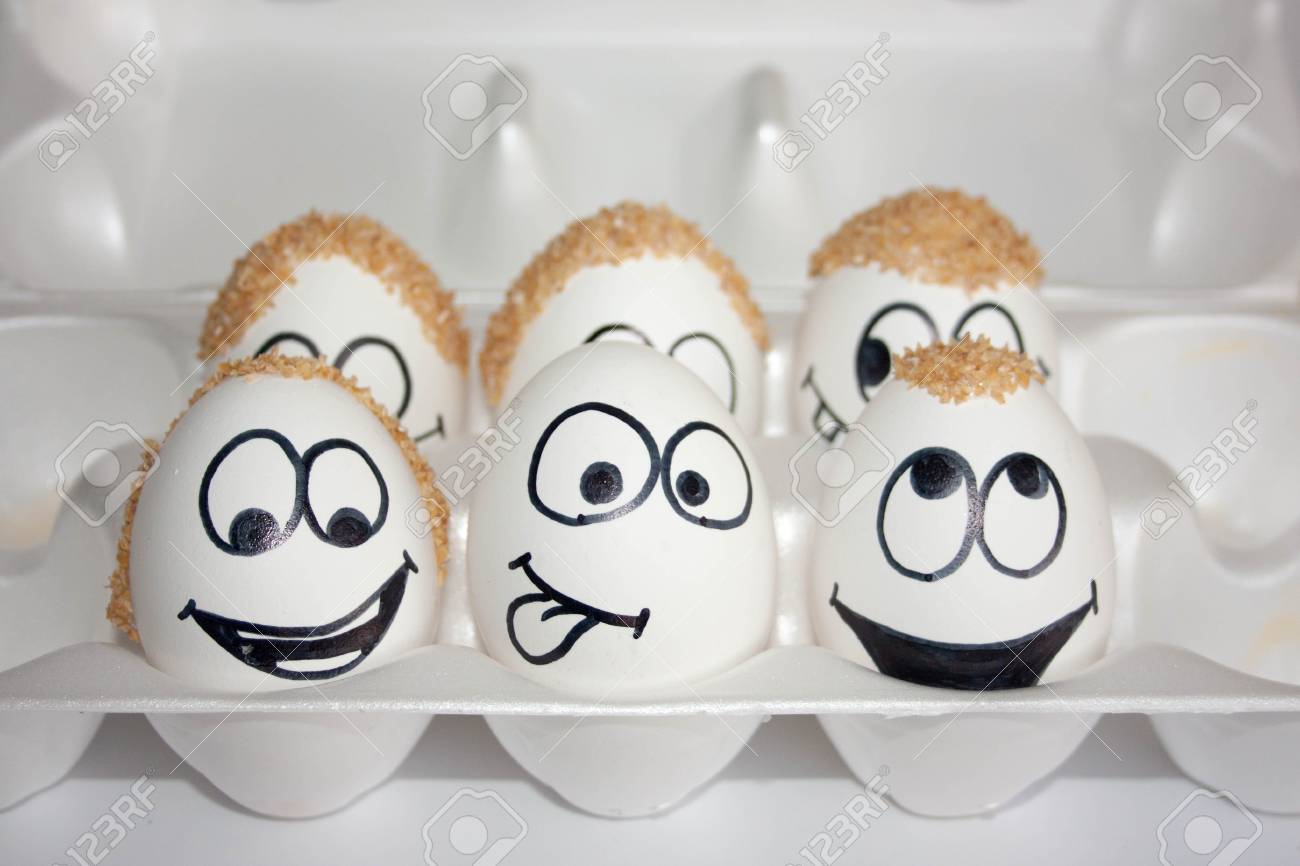 haar konzept die eier sind lustig und suss foto mit gemaltem gesicht auf der muschel satire und komodie das ei lachelt geschweiftes haar aus brei