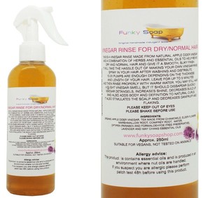 Milde essigspülung für das haar. Der geruch von apfelessig verfliegt sehr schnell so dass die haare nach der spülung nur im nassen zustand ganz wenig riechen.