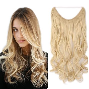 haarteil extensions haarverlangerung 1 tresse haare haarverdichtung gewellt mit unsichtbarer draht gebleichtes blond wavy 50 cm 90g
