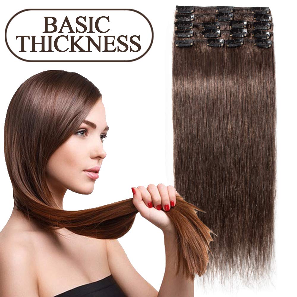 clip in extensions echthaar remy haarverlangerung fur komplette haare 8 tressen doppelt dicke 35cm 120g 4 schokobraun