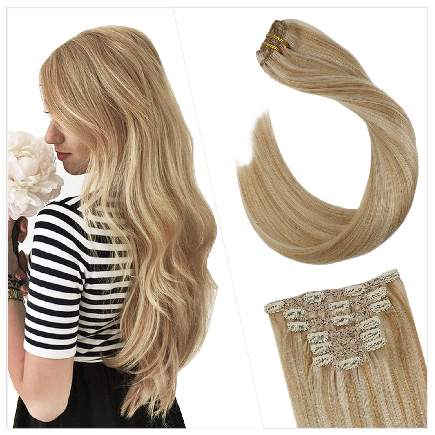 s noilite haarteil extensions haarverlangerung 1 tresse haare haarverdichtung gewellt mit unsichtbarer draht sandy blonde blond bleichen 50 cm