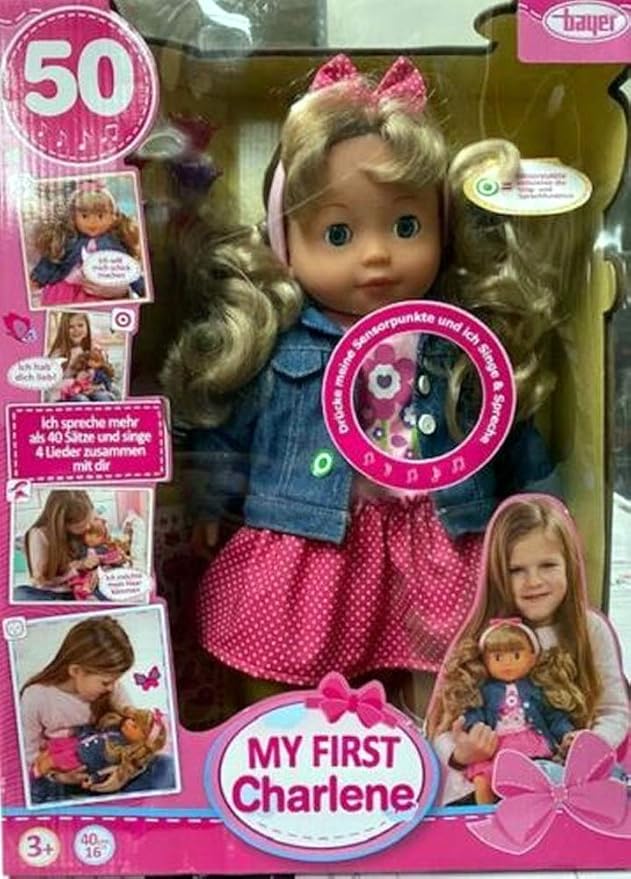 bayer design 9467900 funktionspuppe charlene mit haaren und schlafaugen spricht singt 90 satze 2 gedichte 8 lieder jeans outfit