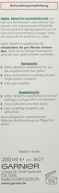 Habe eher fettiges haar und kann über eine übermässige austrocknung nicht berichten. Gleichzeitig bekämpft die garnier neril reaktiv haarwäsche mehrere ursachen eines vermeidbaren haarausfalls. Garnier neril reactive hair wash shampoo 200 ml 6 8 fl oz. Garnier neril haare reaktiv haarwäsche shampoo 1er pack 1 x 200 ml garnier reaktiv haarwäsche 200 ml flasche die konzentrierte reinigungskraft aus einer kombination waschaktiver substanzen und reaktivierender wirkstoffe reinigen ohne die empfindliche kopfhaut zu reizen.