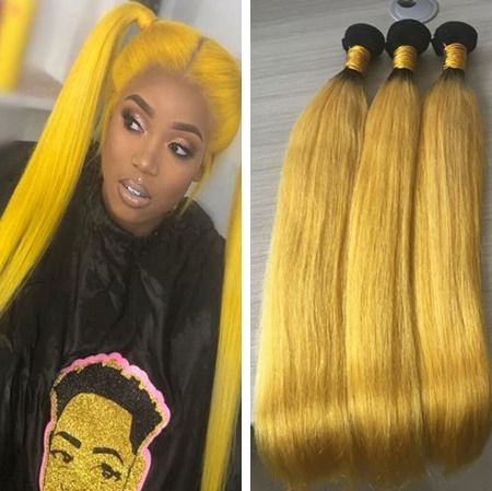 grosshandel 9a gunstige brasilianische ombre gelbe haare bundles gerade stil unverarbeitete hellgelbe menschenhaar webart schussverlangerungen von
