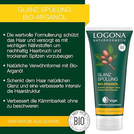 logona naturkosmetik glanz spulung bio arganol pflege fur strapaziertes stumpfes haar schenkt naturlichen seidigen glanz condiotiner mit