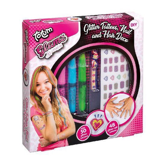 totum glamz glitter nagels tattoos haar beauty mode set