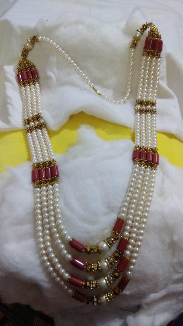 rani haar with green meena pendant and white moti