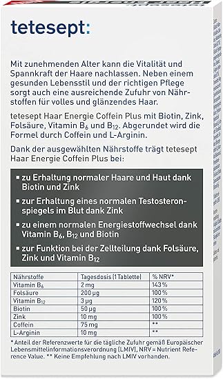 tetesept hair energy caffeine plus dietary supplement 30 tbl from germany