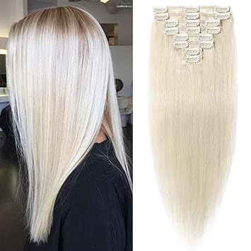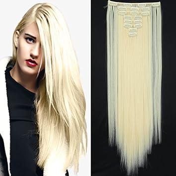 prettyshop xxl set 8 pcs 24 clip in hair extensions full head hairpiece wavy curled or straight heat resisting div colors bleach blonde mix curled
