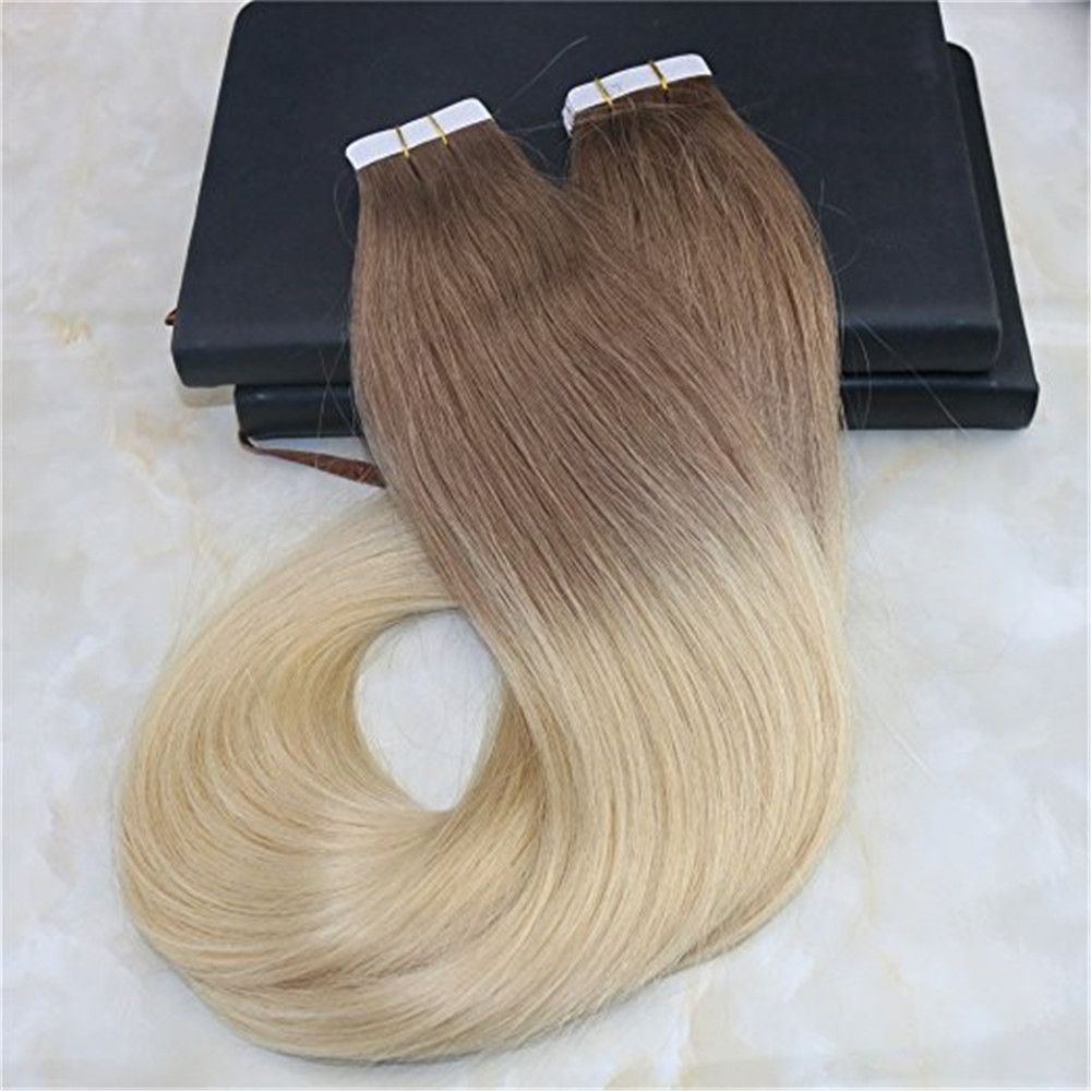 grosshandel kleben sie das haar ombre extensions tape auf das brasilianische remy hair fading color hellbraun 6 um das blonde 613 dip dye color