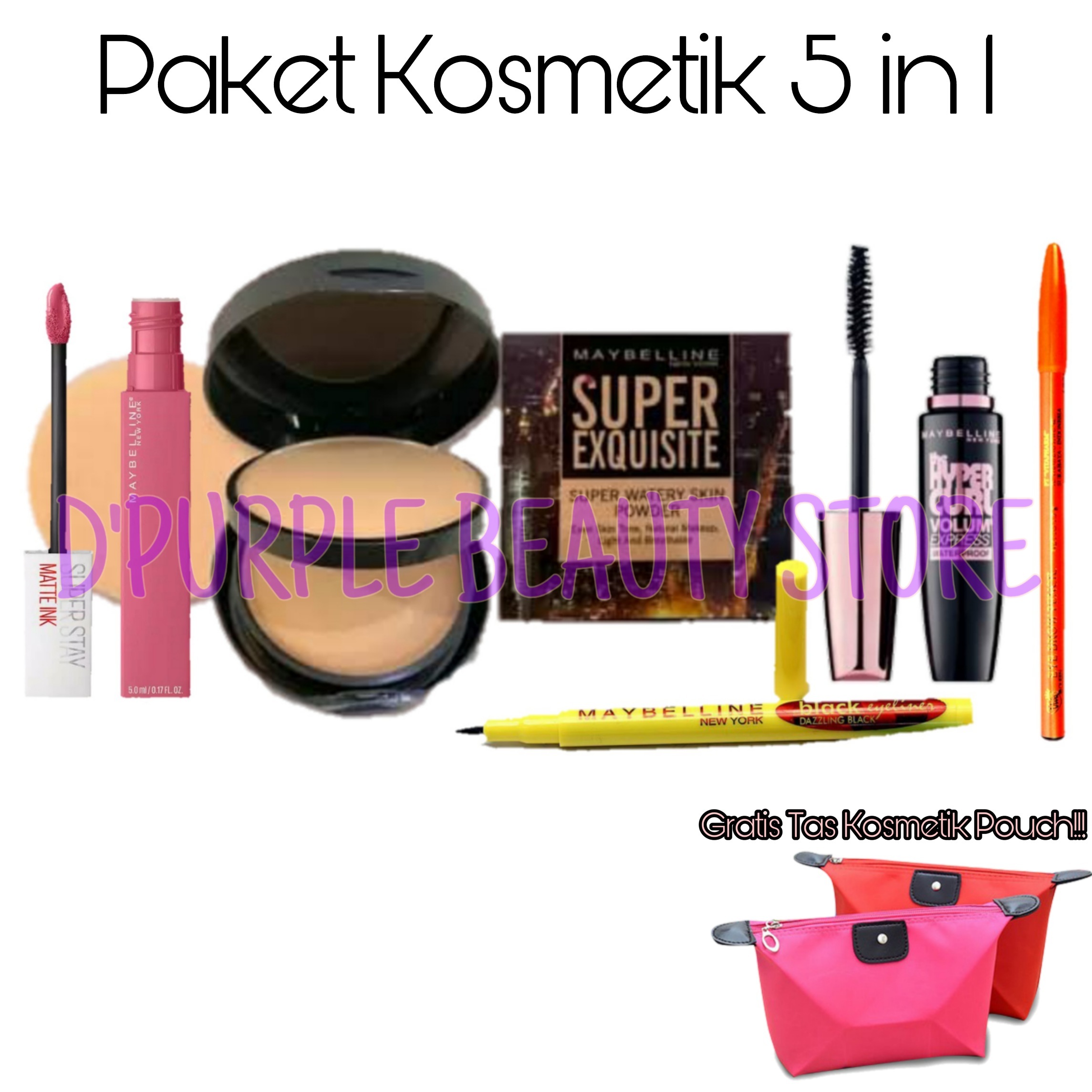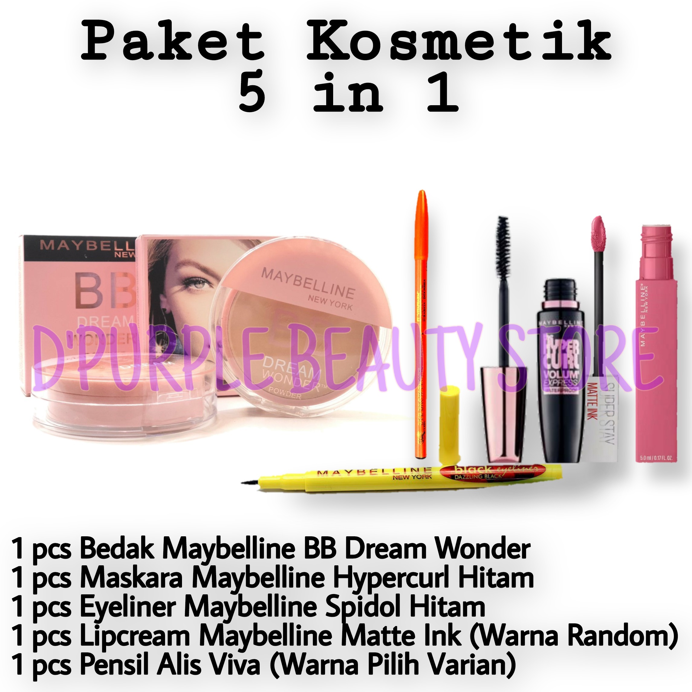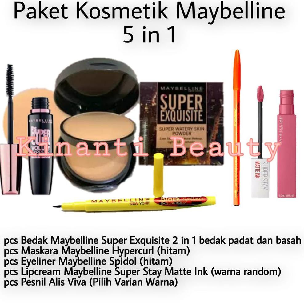paket makeup lengkap maybelline 1 set 5 in 1 paket kosmetik wanita lengkap murah 1 set 5 in 1 bedak maskara eyeliner lipcream pensil alis