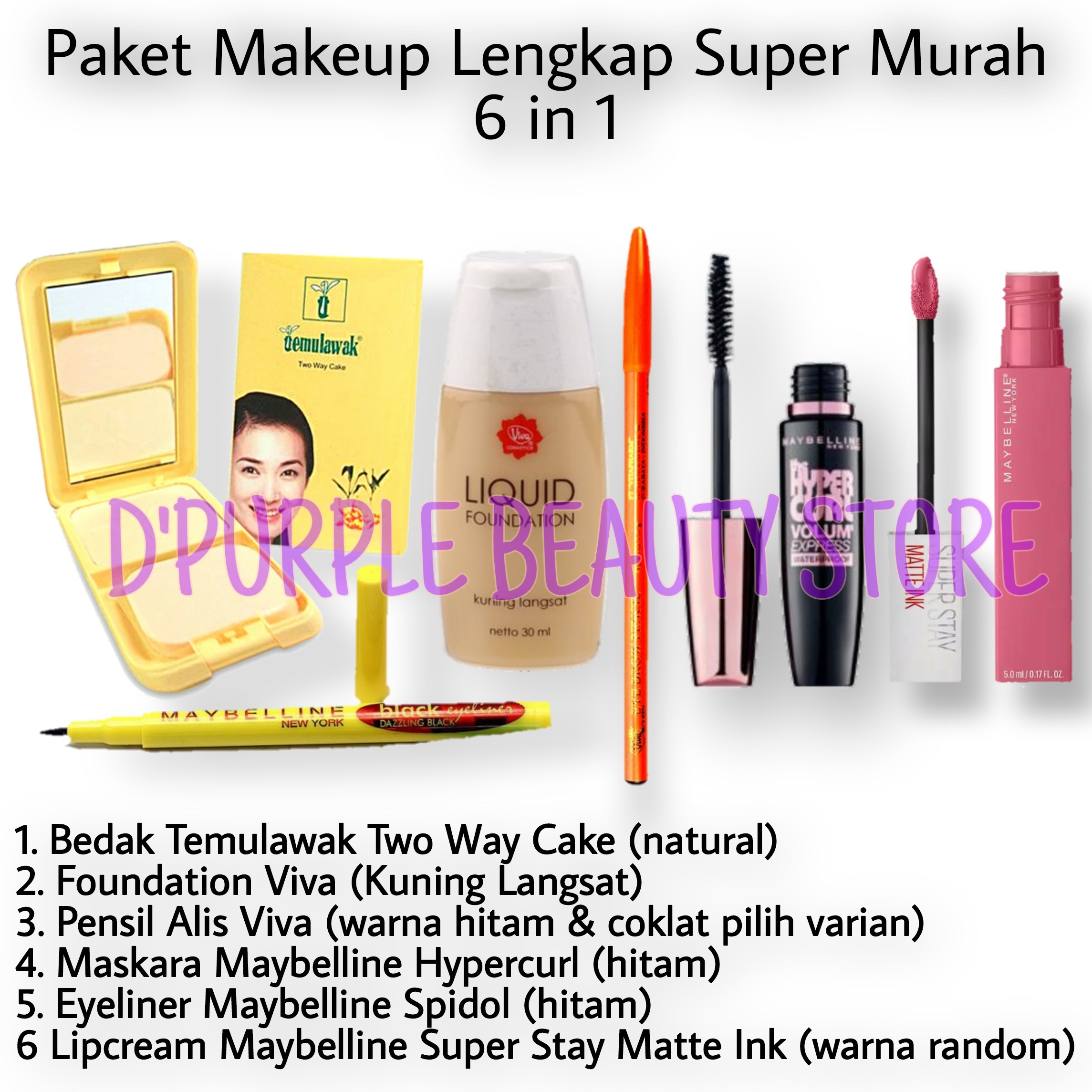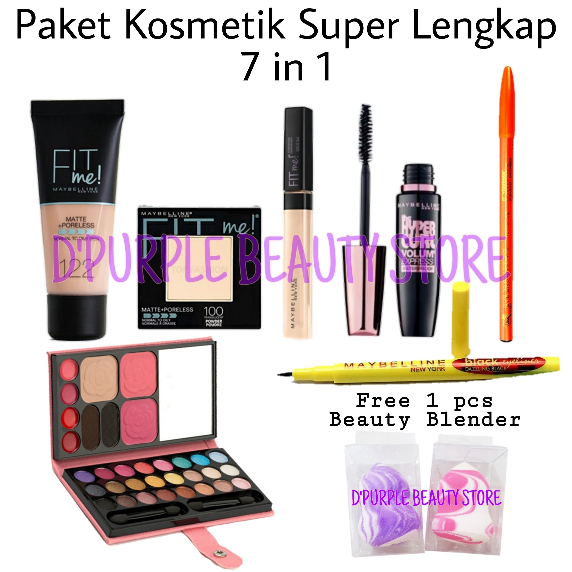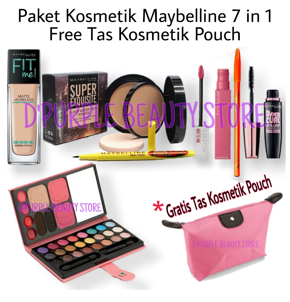 paket makeup lengkap maybelline 1 set 7 in 1 paket kosmetik maybelline lengkap murah 1 set 7 in 1 bedak foundation maskara eyeliner