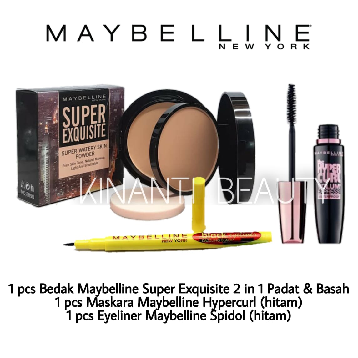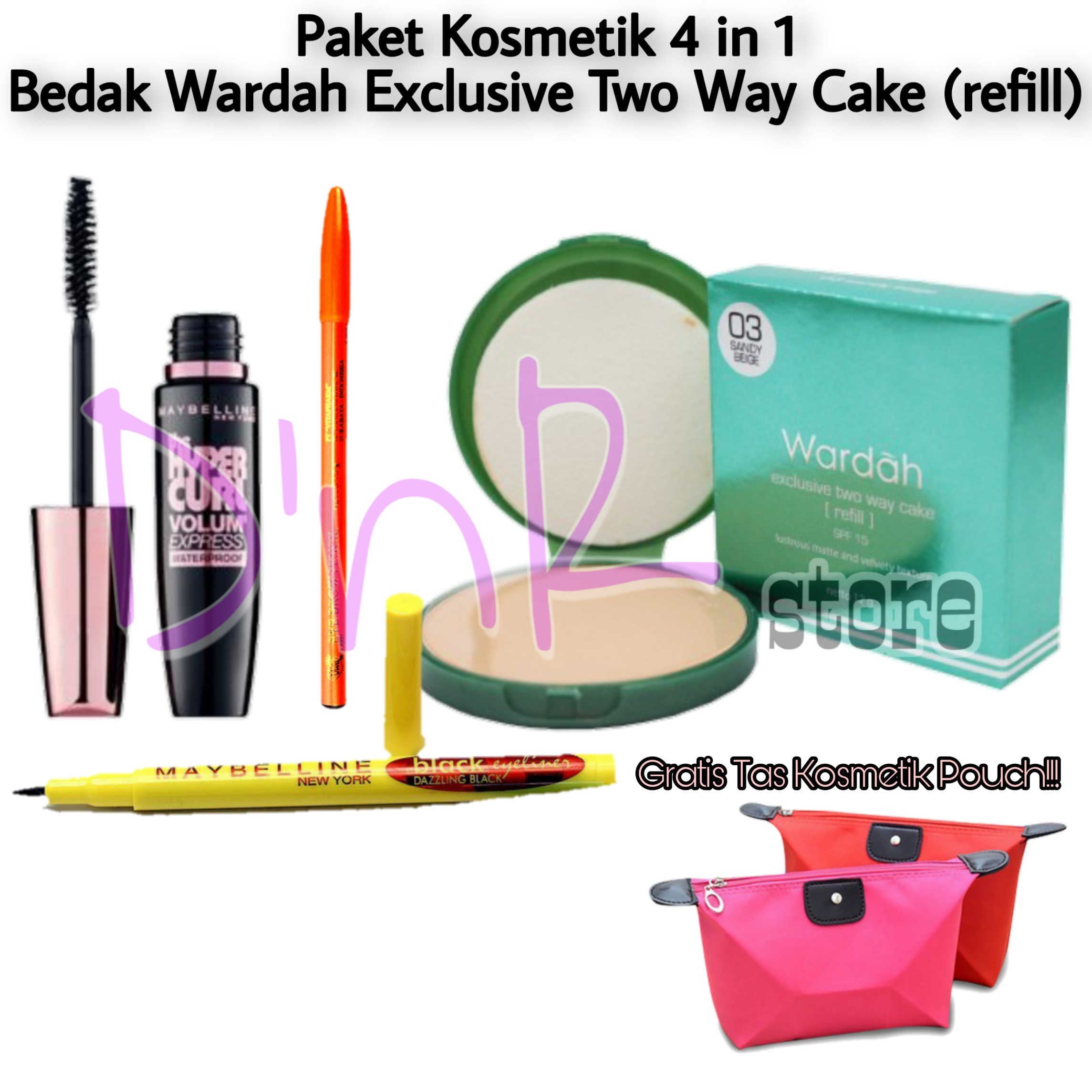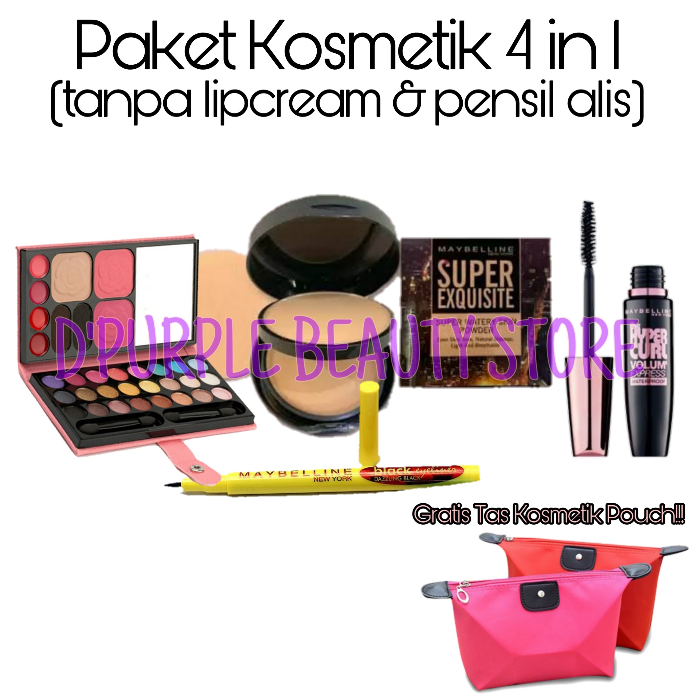 paket makeup lengkap maybelline 1 set 4 in 1 paket kosmetik wanita lengkap murah 1 set 4 in 1 bedak maskara eyeliner eyeshadow tas