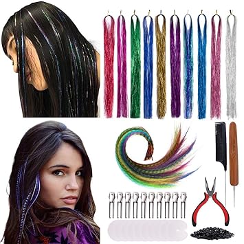 Hair tinsels sind transparente haarverlängerungen die in verschiedenen farben erhältlich sind und dem haar einen schimmernden effekt verleihen.