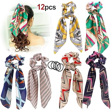 howaf 12 stucke satin silk scrunchies haarbander haarschal chiffon haargummis pferdeschwanz halter haargummis vintage haar zubehor fur madchen frauen