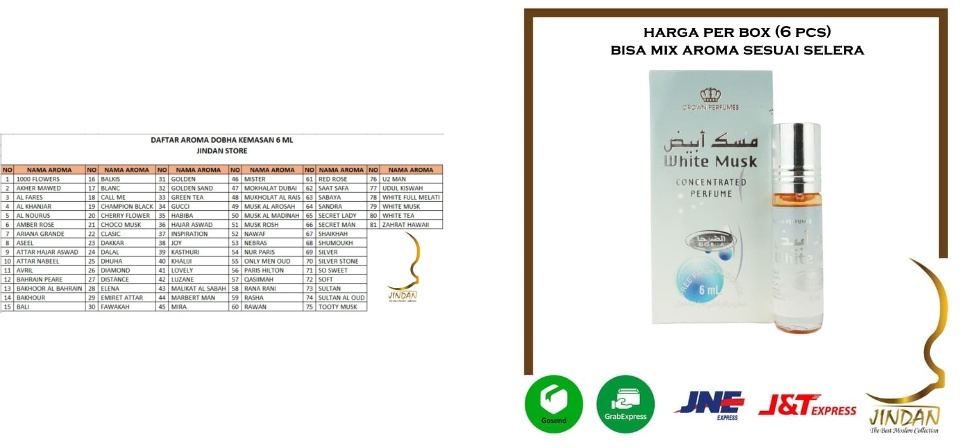 parfum dobha non alkohol roll on per box 6 pcs white musk