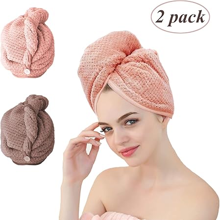 turban handtuch schnelltrocknend 2 stuck saugfahig mikrofaser haarturban haar trocken handtuch mit schleife und knopf haare handtucher kopfhandtuch