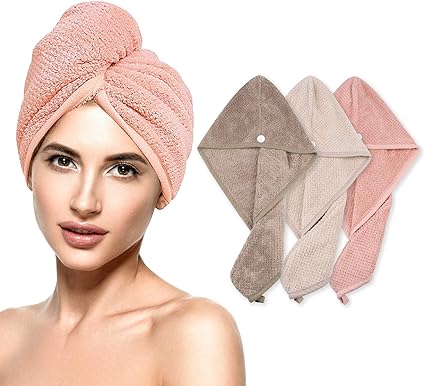 iliebe haarturban 3 stuckturban handtuch mit knopf turban haartrockentuch schnelltrocknend mikrofaser handtuch fur kopf und lange haare