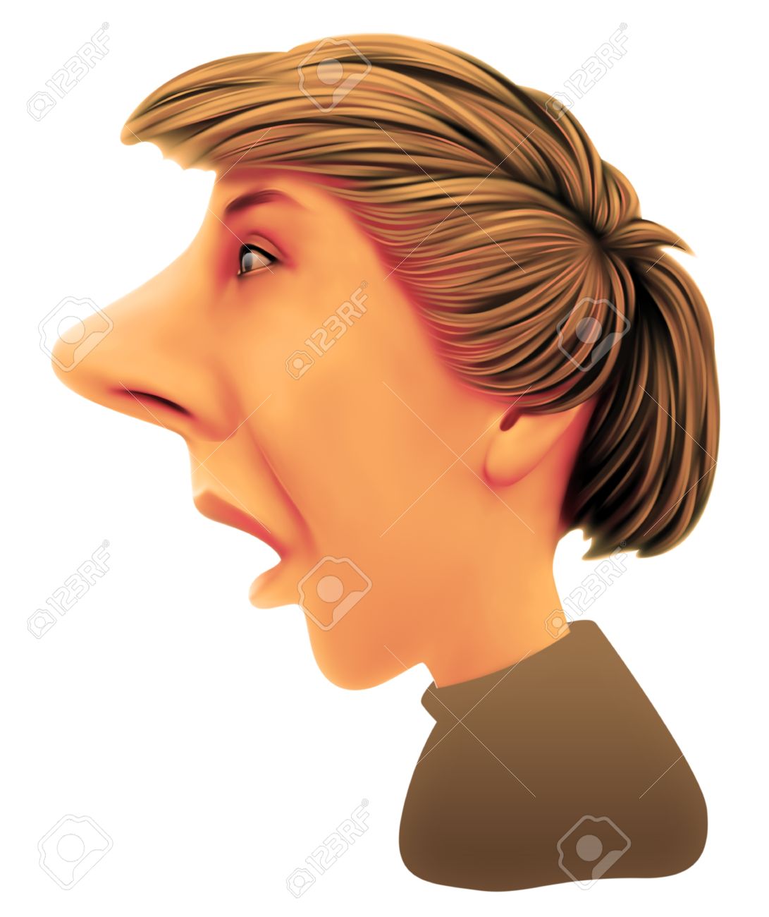 profil eines schlaksig aussehender junge mit einer grossen nase braune haare offnete den mund und einen uberraschten blick