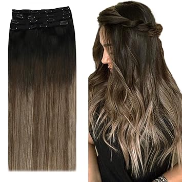 sunny doppelt tressen clip extensions echthaar ombre hellbraun mit blond 7 tressen voller kopf remy extensions echthaar clip in balayage