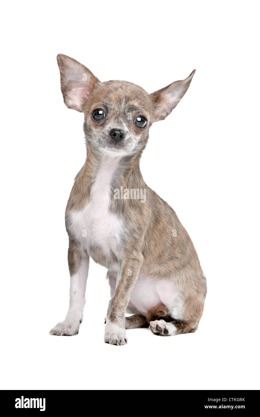 https www alamy com long hair chihuahua sitting looking at the camera against white background image67307324 html