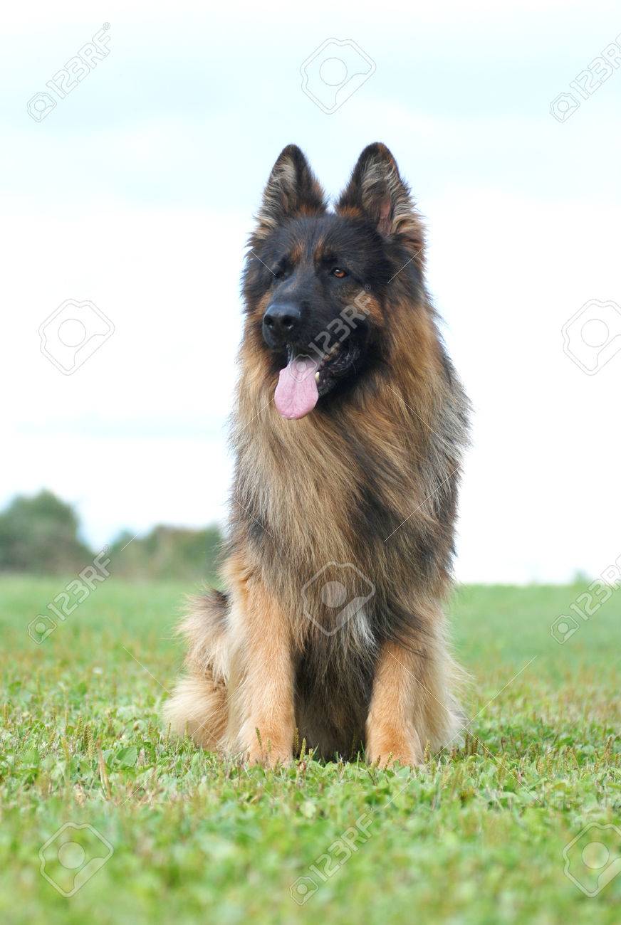 lange haare deutsch schaferhund sitzt