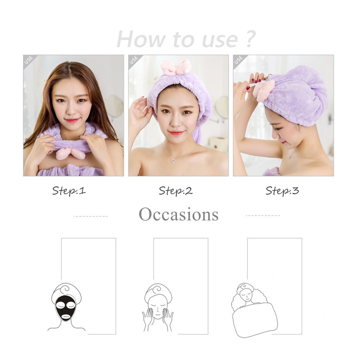 mmtx turban handtuch 3 stuck haarturban schnelltrocknend mikrofaser handtuch haare mit knopf