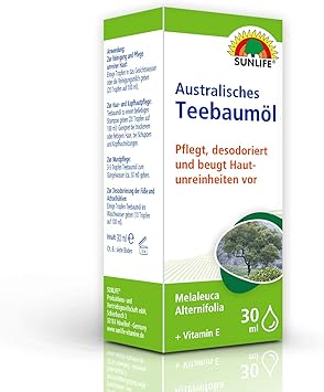 sunlife australisches teebaumol haar und hautpflege mit vitamin e pflegt reinigt und desodoriert 30ml