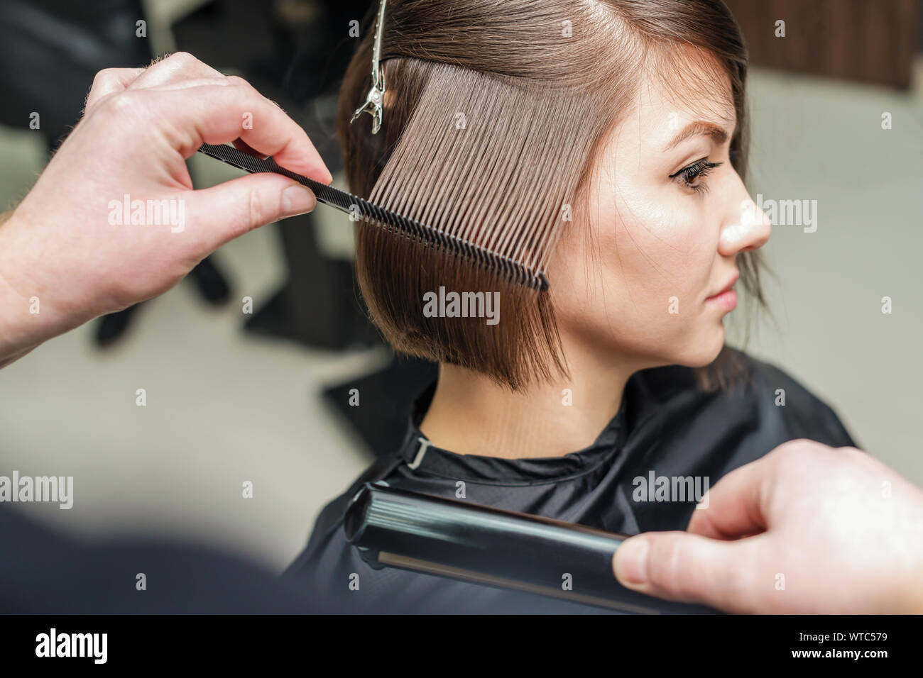https www istockphoto com de foto hand des friseurs k c3 a4mmt die kurzen rosa haare eines kunden mit einem kamm gm1180489167 330739976
