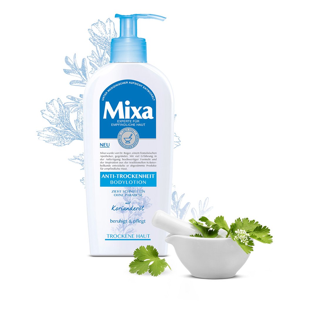 mixa anti trockenheit bodylotion fur empfindliche trockene haut mit beruhigendem korianderol ohne parabene und farbstoffe 3er pack 3 x 250 ml