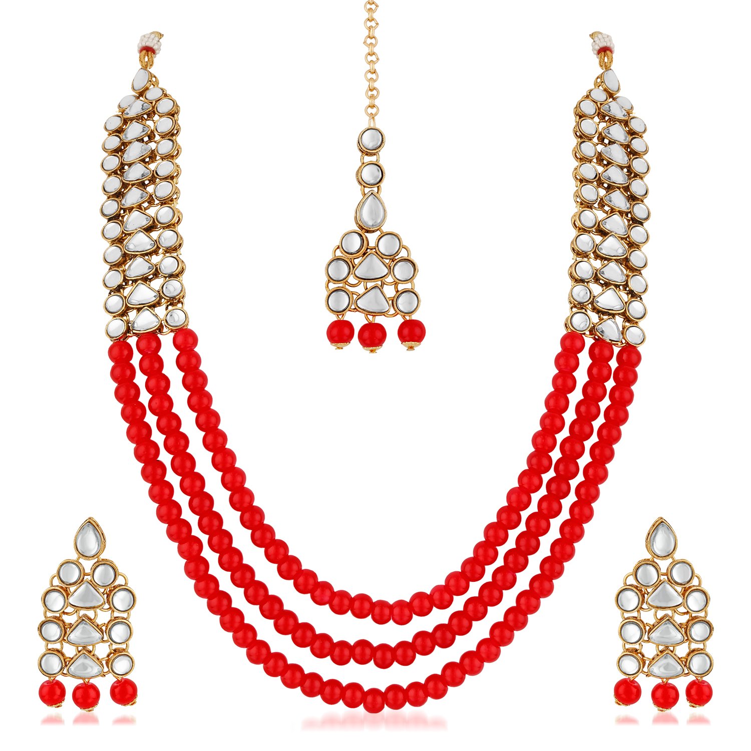pearls jewellery white multistrand moti rani haar necklace set for women