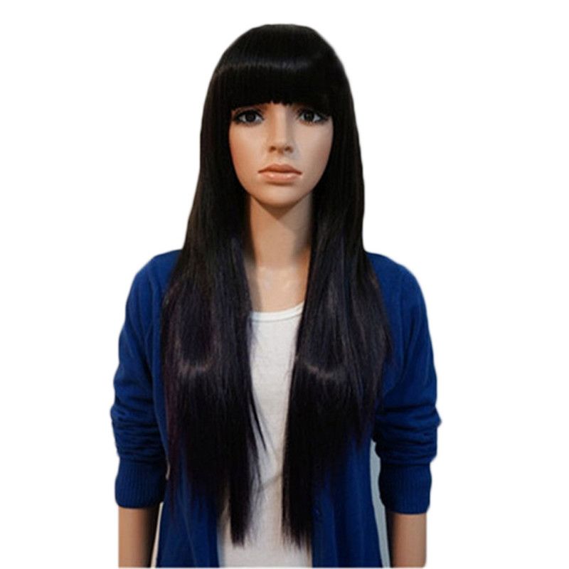 grosshandel woodfestival lange gerade perucke frauen naturliche billige haar perucken lange schwarze perucken mit pony hellbraun dunkelbraun 70 cm von