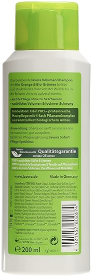 lavera volumen haar shampoo bio orange haarpflege feines kraftloses haar naturliche fulle und struktur vegan 4er pack 4 x 200 ml
