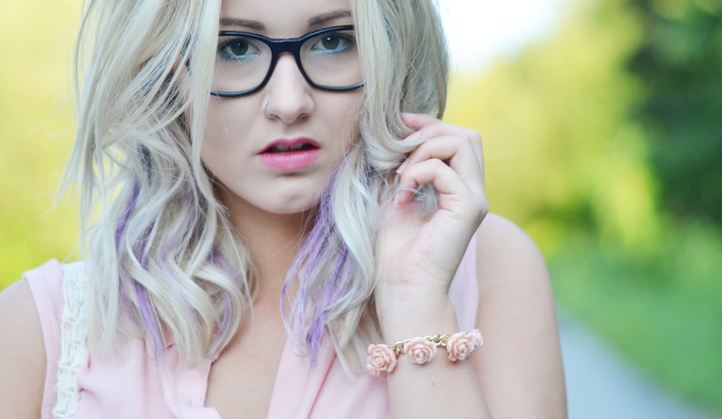 mittelblonde haare pastell lila farben