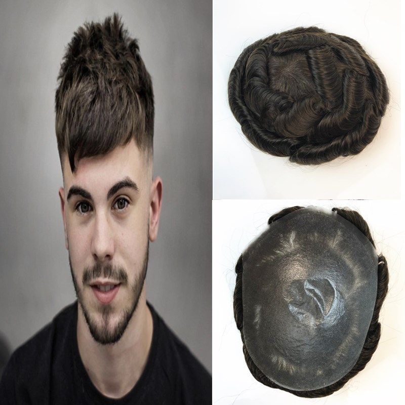 dunne haut manner perucke naturliche haar herren toupet 8x10inch haar ersatz systeme handgemachte perucke 100 menschliche naturliche remy haar fur