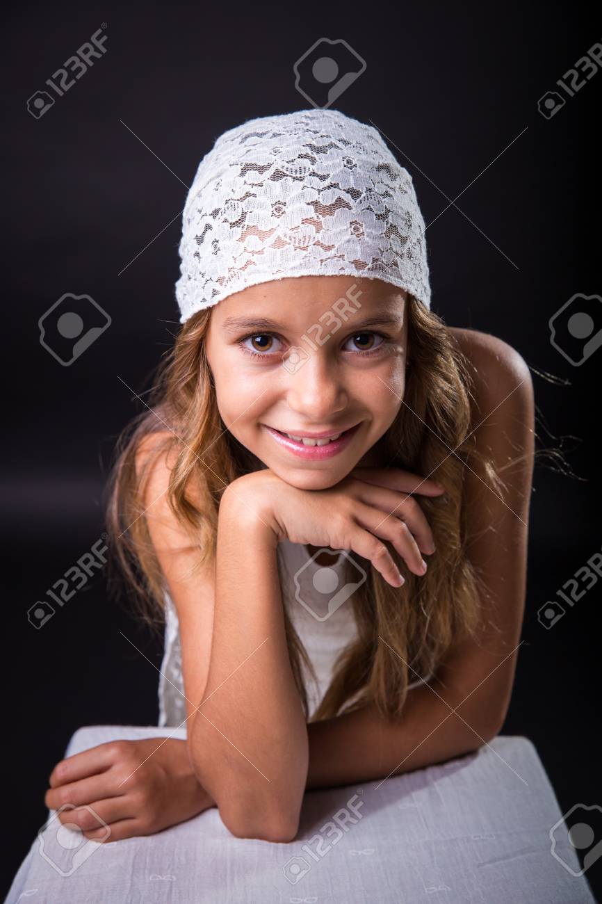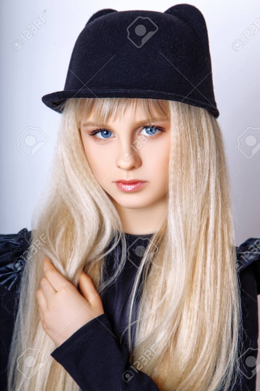 https de 123rf com photo 48886650 junges m c3 a4dchen mit langen haaren und m c3 bctze auf schwarzem hintergrund l c3 a4chelnd html