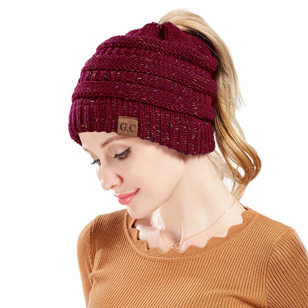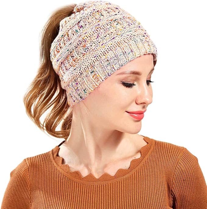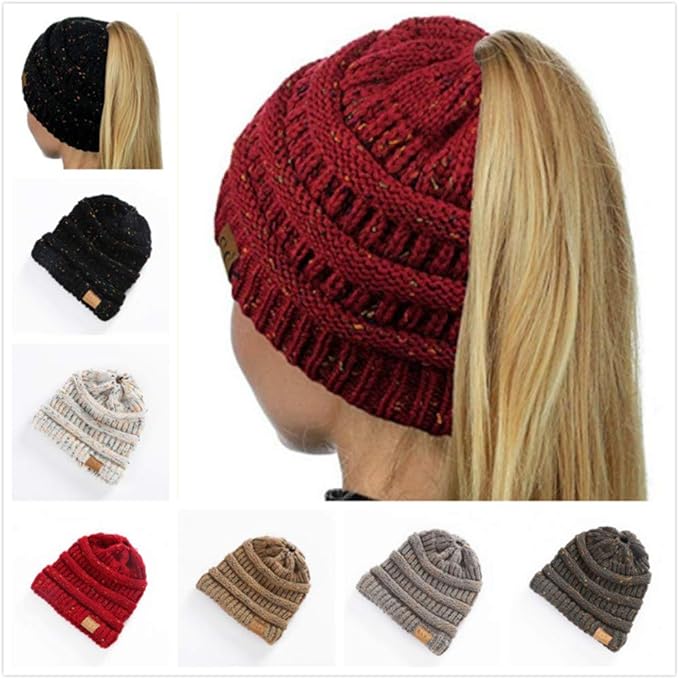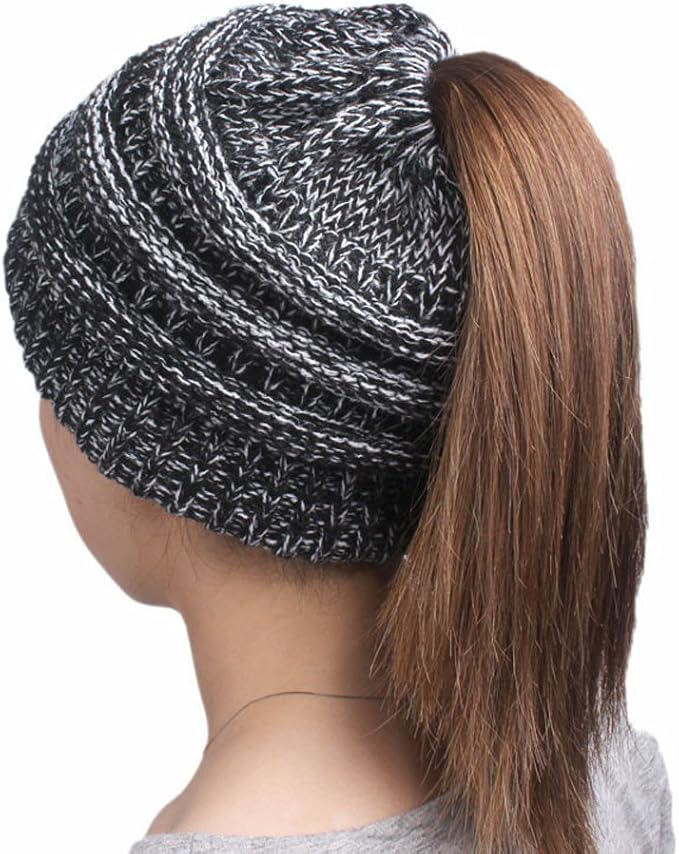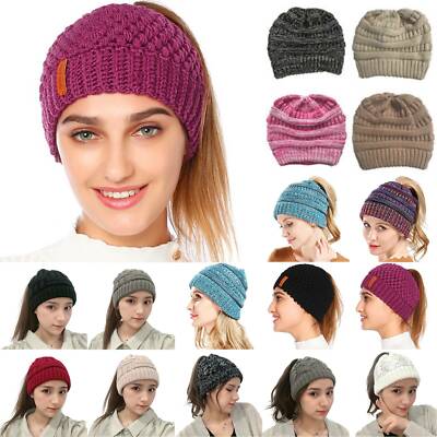 damen madchen mutze mit loch fur pferdeschwanz gestrickte strickmutze wintermutze mit zopfen loch