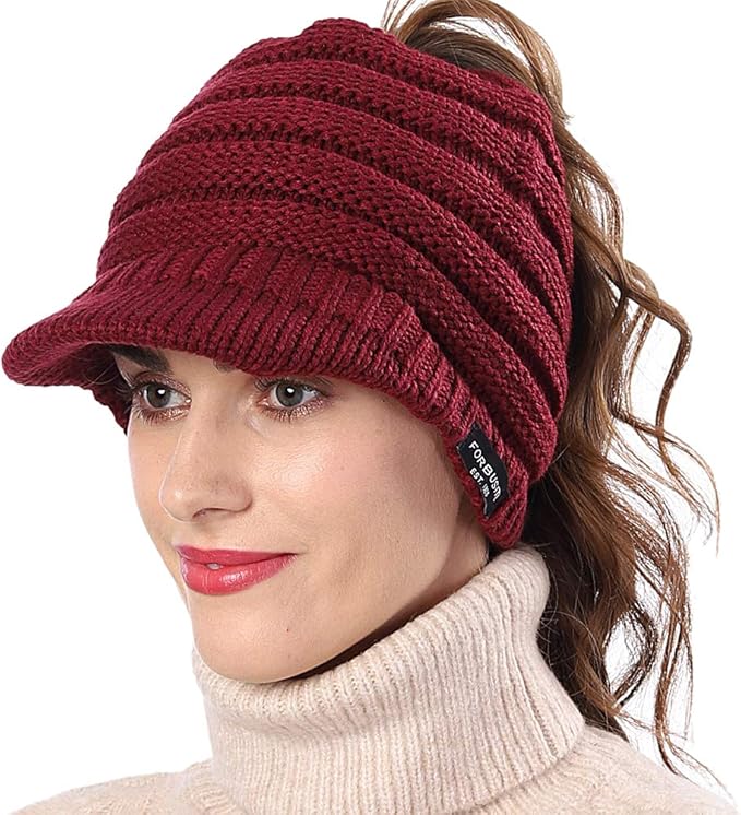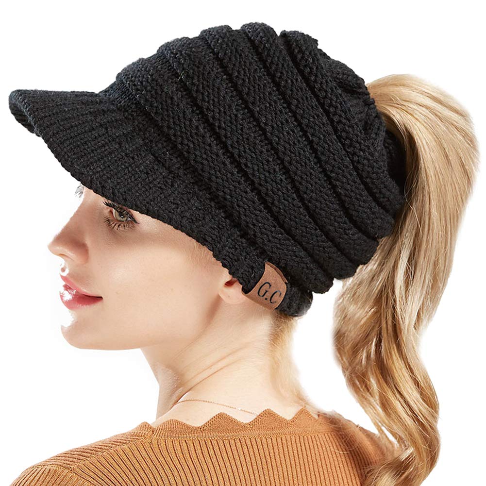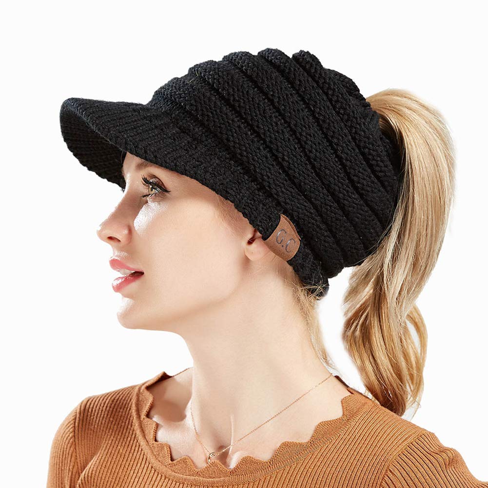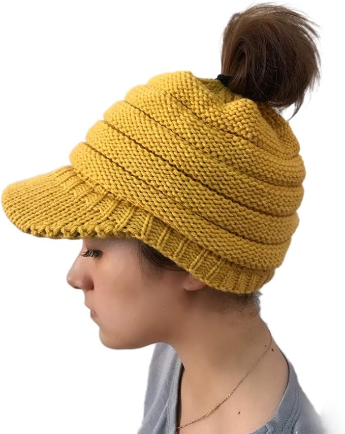 dy mode damen strickmutze mit schirm schirmmutze pferdeschwanz zopf loch a308