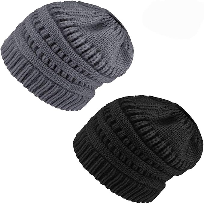 betoy 2 stucke damen madchen mutze mit loch fur pferdeschwanz gestrickte strickmutze wintermutze mit zopfen loch schwarz grau